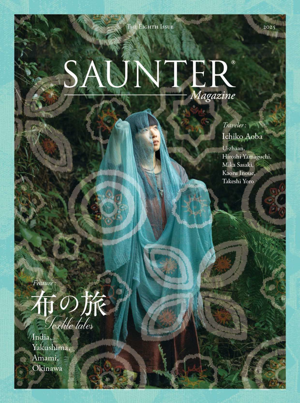 We were responsible for the cover photography, editorial visuals, and trailer movie production for Saunter Magazine Issue 8, a culture magazine originating from Yakushima. Titled “Textile Tales,” this issue explores the rich stories of fabric across India and Japan’s southwestern islands—Yakushima, Amami Ōshima, and Okinawa—through the eyes of travelers tracing traditional techniques and the memory of place.